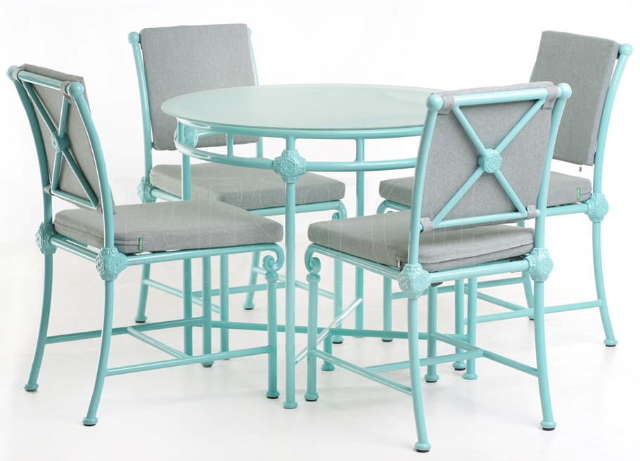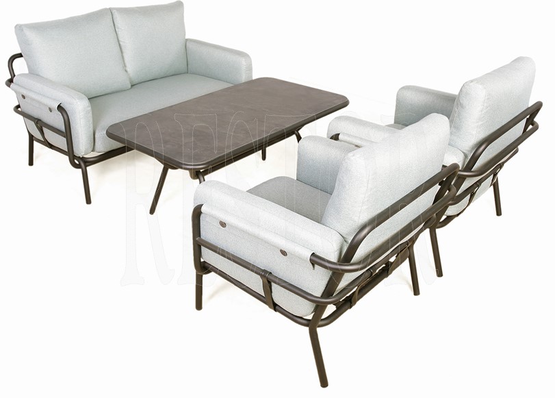 Изготовление мебели произведено из литого алюминия с покрытием порошковой краски. Металл не подвержен коррозии, а краска предотвращает любое механическое воздействие. Оформление модели возможно в любом оттенке по шкале Rul.