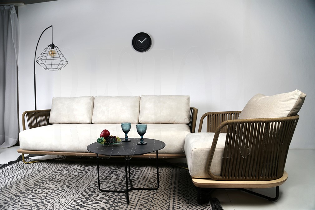 Диван Форест тримісний - виконаний з деревяного каркаса, підлокітники обплетені шнуром, додатково мякий текстиль. Компанія Restor надає гарантію від виробника на всі нові моделі сайта. Доставка за кордон та по Україні.