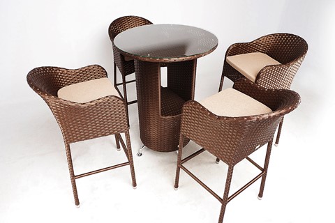Незвичайний тип столу для колекції Барний від Restor®. Нетривіальна та своєрідна авторська робота не залишиться без інтересу. Плетена модель з великою нішою та круглою стільницею зі склом на маленьких вигнутих ніжках.
