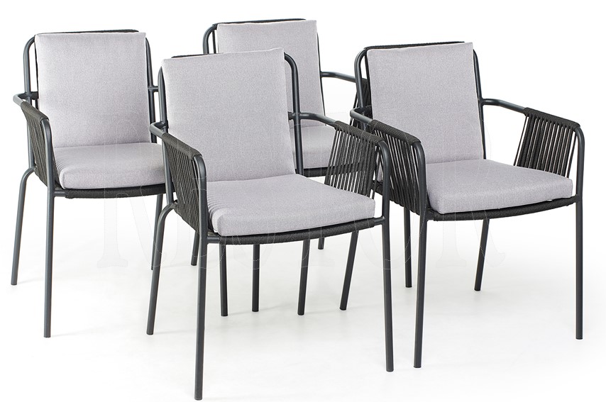 Стійкий стілець виготовлений із сталі + покриття порошковою фарбою (каркас) з оплетенням широкого штучного ротанга. Ширина ротангової стрічки – 12 мм.