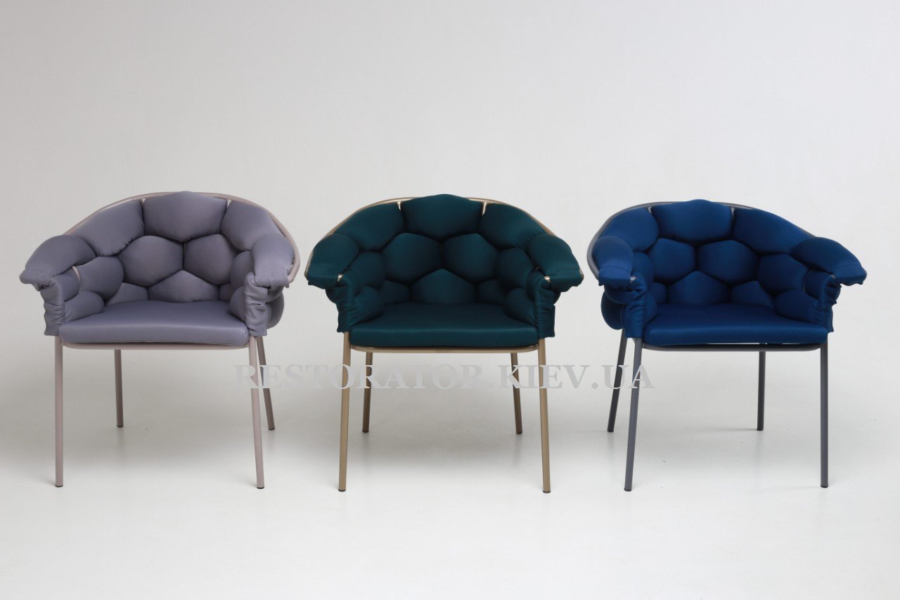 Ряд мебельных шедевров компании Restor® пополнен новыми креслами – "Элеонор". Яркая модель для вашего интерьера.   Необычная конструкция, а именно дополнение спинки изделия длинной мягкой подушкой. Текстиль сидения и спинки выполнен из дайвинга (трикотаж), Текстиль просчитывается инд …