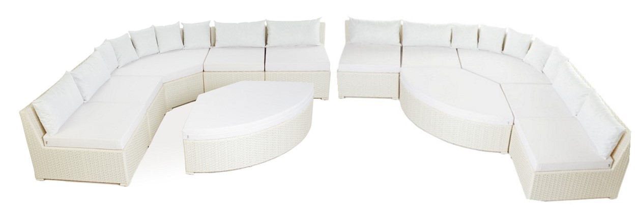 Тепер і меблевий комплект "Оазис" можна скомпонувати так, щоб вистачило місця всім охочим. Розмістити багато людей Вам допоможе радіусний диван колекції. Елемент інтер'єру може служити, як одиничний гарнітур у кімнаті чи, як складова кутового дивана.