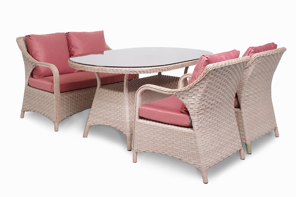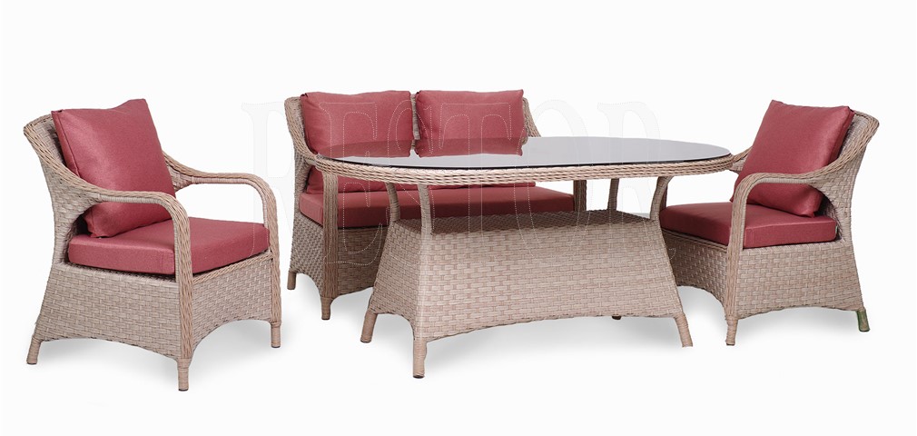 Розмір моделі: Ширина - 160 см Глибина - 100 см Висота - 75 см Матеріал карксу -  Алюміній. Матеріал стільниці - HPL, загартоване скло, плетена штучним ротангом стільниця. Додатково можлива  брендування, нанесення зображення чи надпису. Придбавши меблі компан …