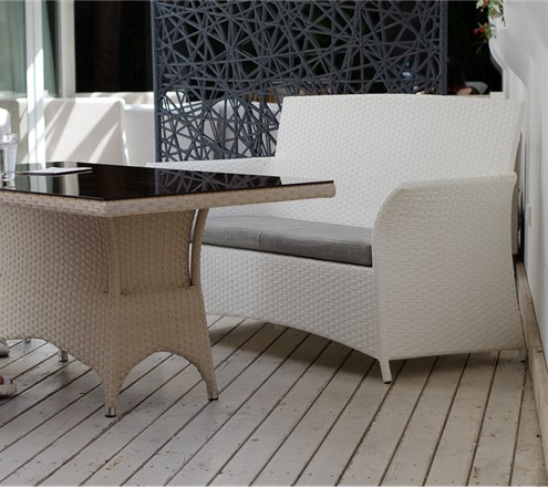Плетений диван зі штучного ротанга "Патіо" для розташування трьох осіб. Ретельно розрахована ергономіка меблів для людей будь-якої комплекції.   Компанія Restor® пропонує стильний та яскравий диван для експлуатації на відкритих верандах. Ефектна модель з витонченими вигинами обов'язк …