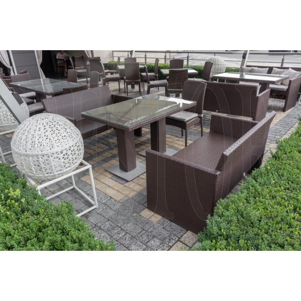 Матеріал вологостійкий та не сприйнятливий до впливів погодних умов. Виріб з техноротангової стрічки представлений у трьох кольорах: білий, кава з молоком та коричневий.